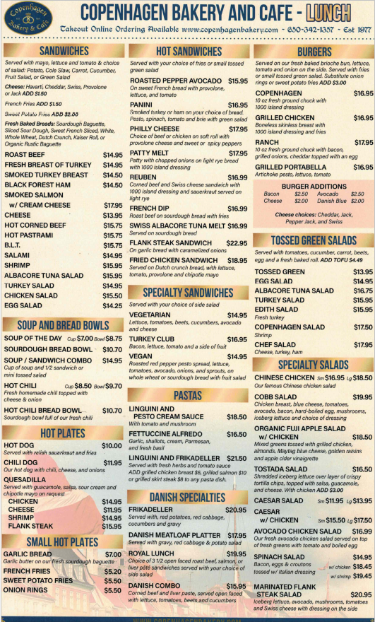 Café Menus Breakfast Menu Click the image to view the full menu Lunch Menu Click the image to view the full menu Dinner Menu Click the image to view the full menu Catering Menu Click the image to view the full menu Soup Menu Click the image to view the full menu Kids Lunch Menu Click the image to view the full menu Kids Dinner Menu Click the image to view the full menu